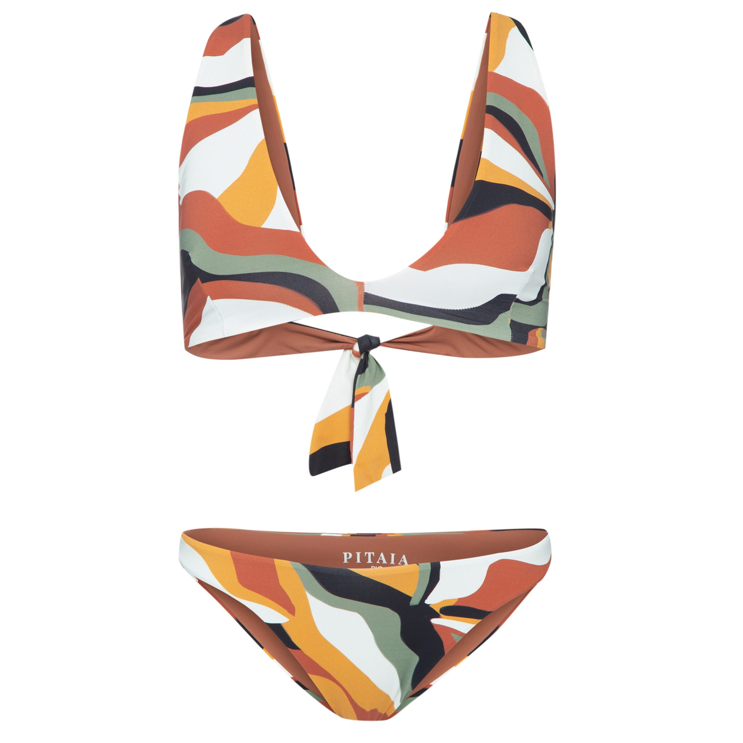 O modelo do biquíni Kiwi foi idealizado para uma proposta versátil que transita bem de um dia de sol para um pós praia ao ar livre. O decote v alonga a silhueta deixando o visual moderno e atualizado tanto para uma visual urbano quanto para praia. Combine com a saia de linho e a bolsa de palha da Pitaia Rio.