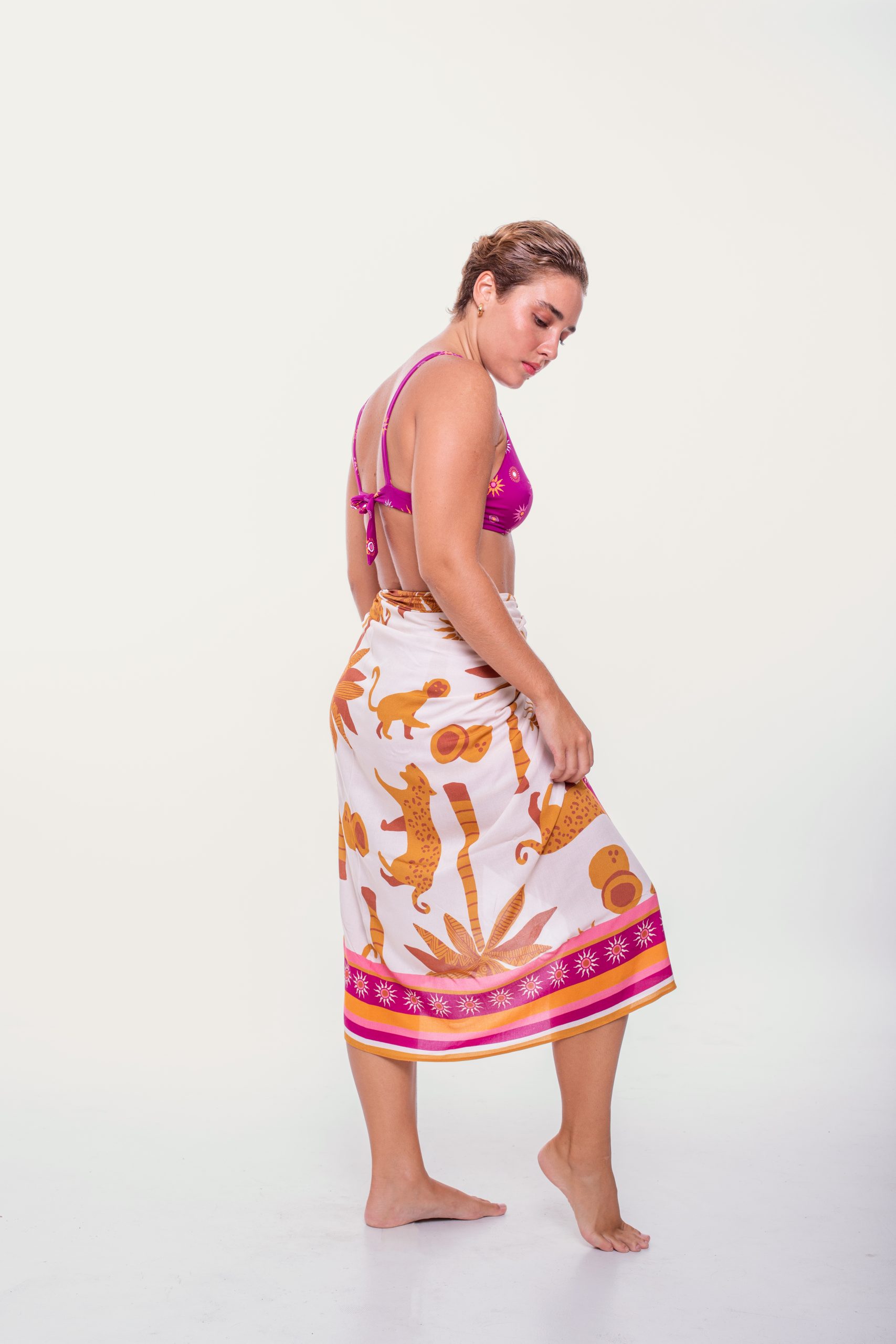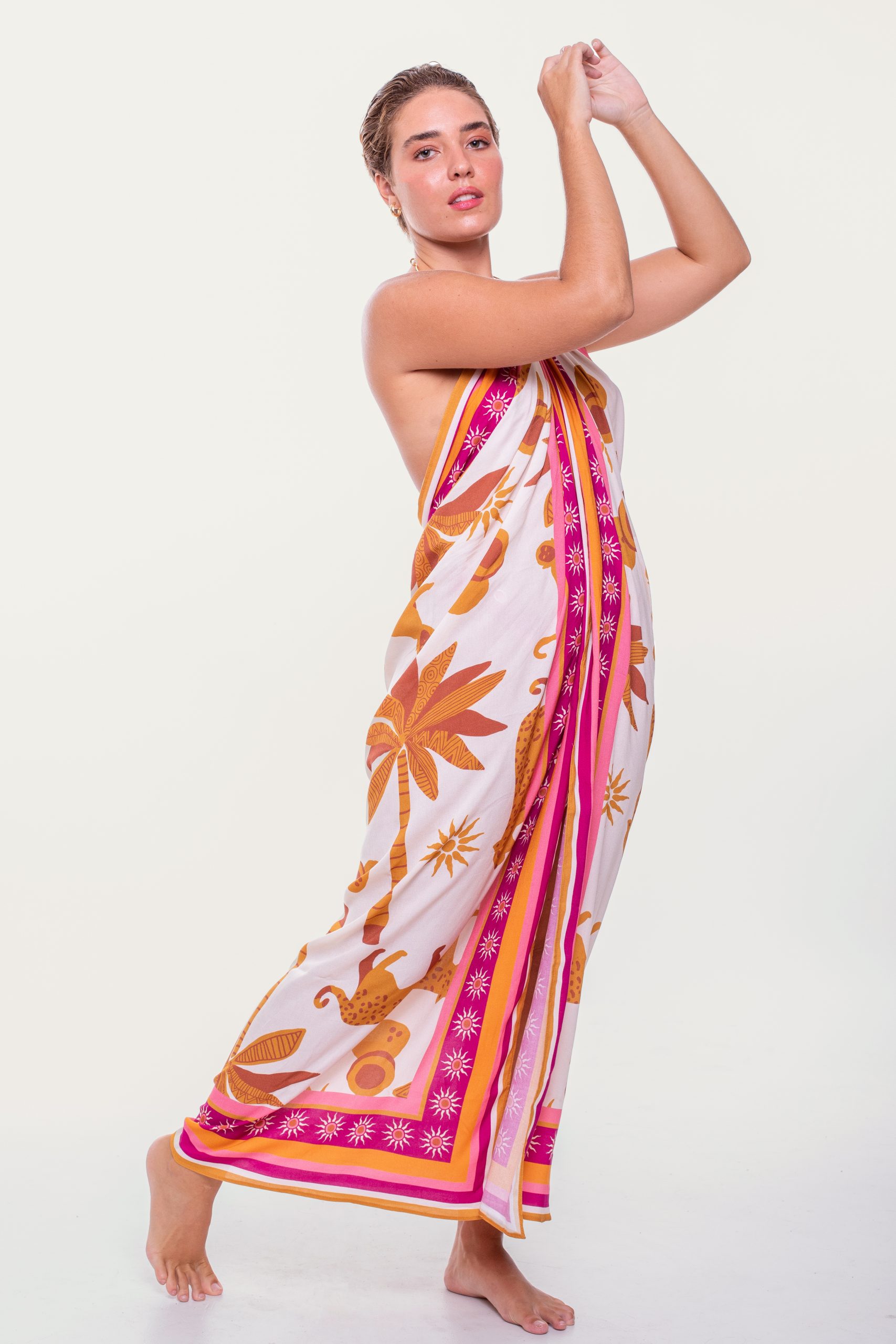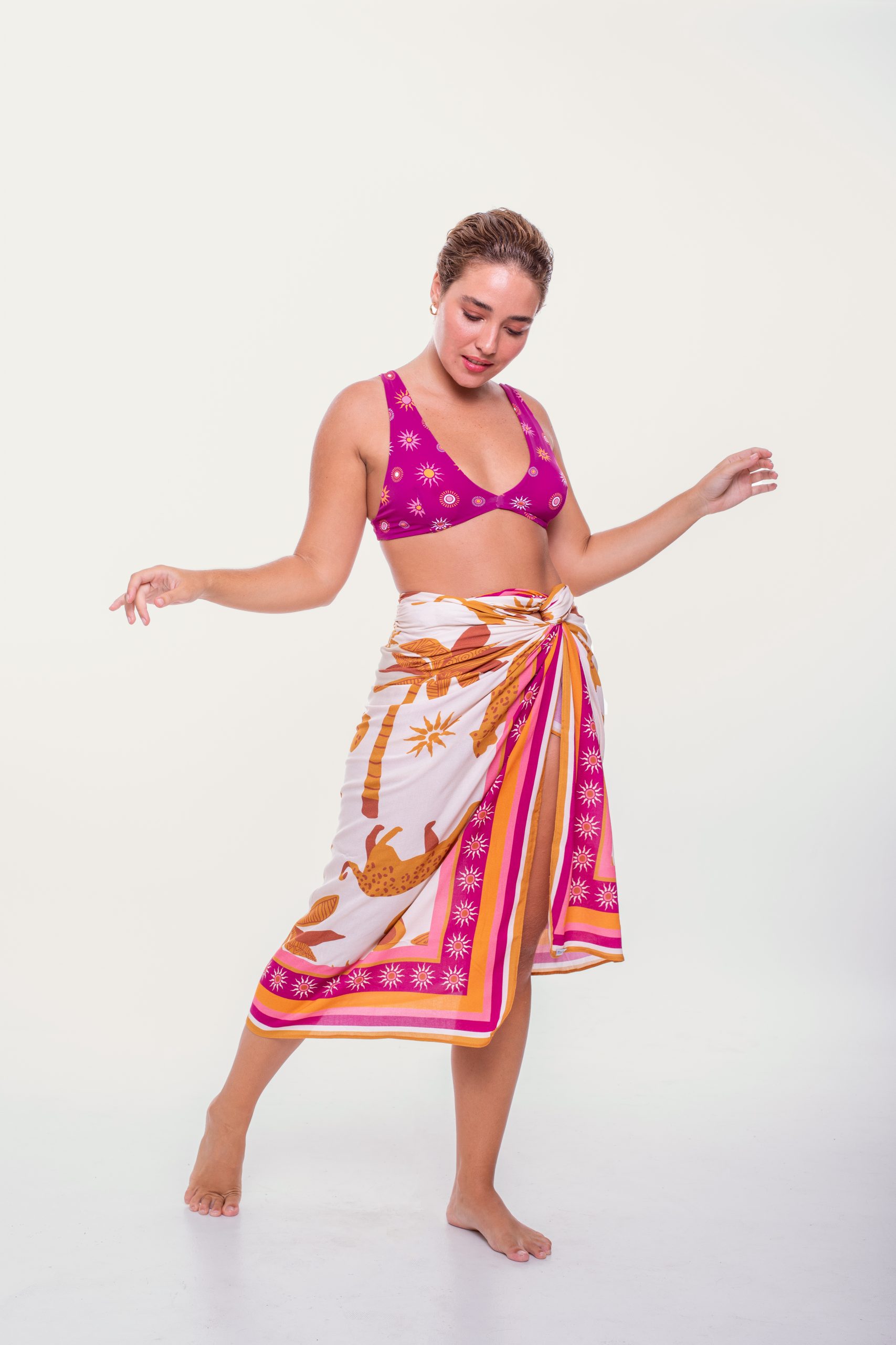 Barrado na estampa sol e interior na estampa floresta. Utilize essa peça junto do biquíni/maiô em uma das estampas para um visual completo e elegante durante seu momento de sol e lazer.