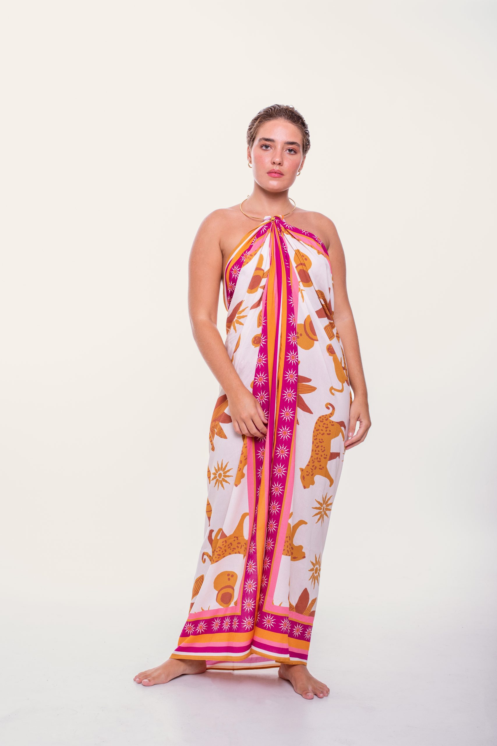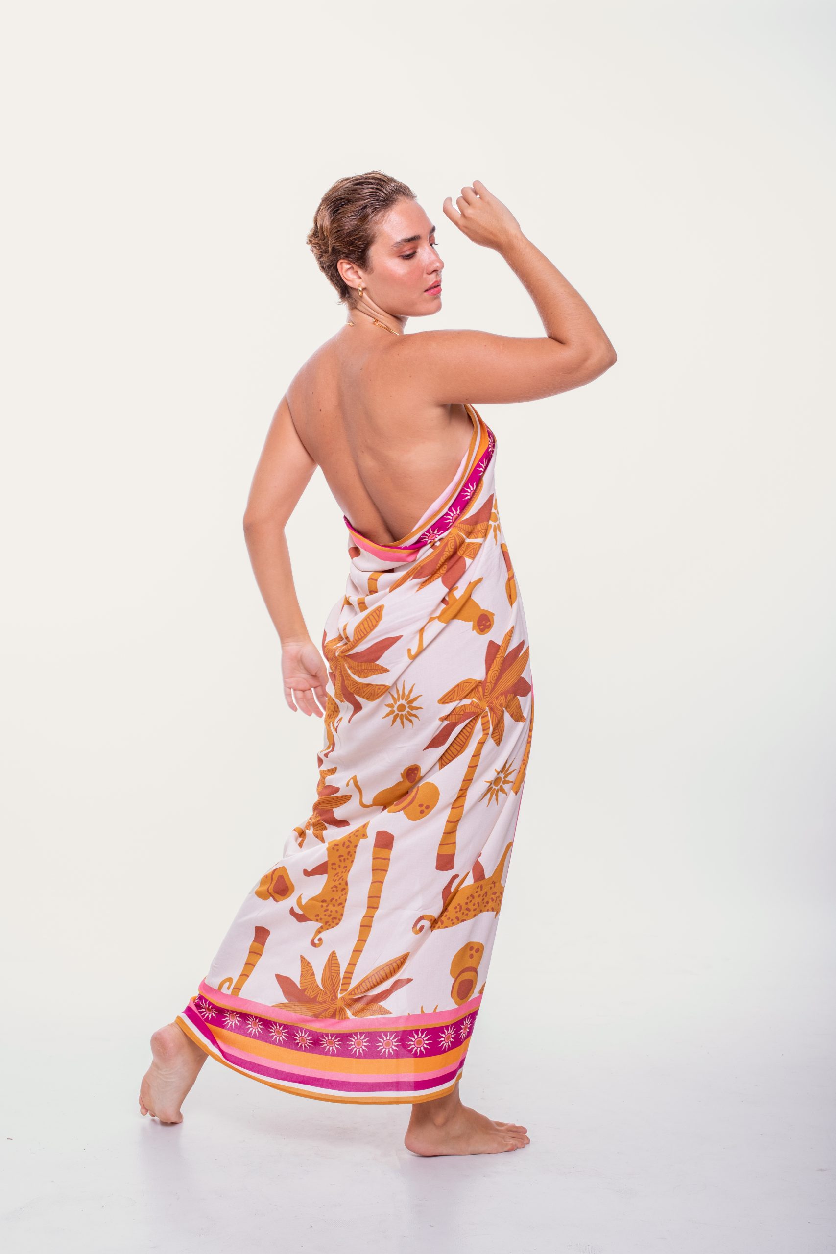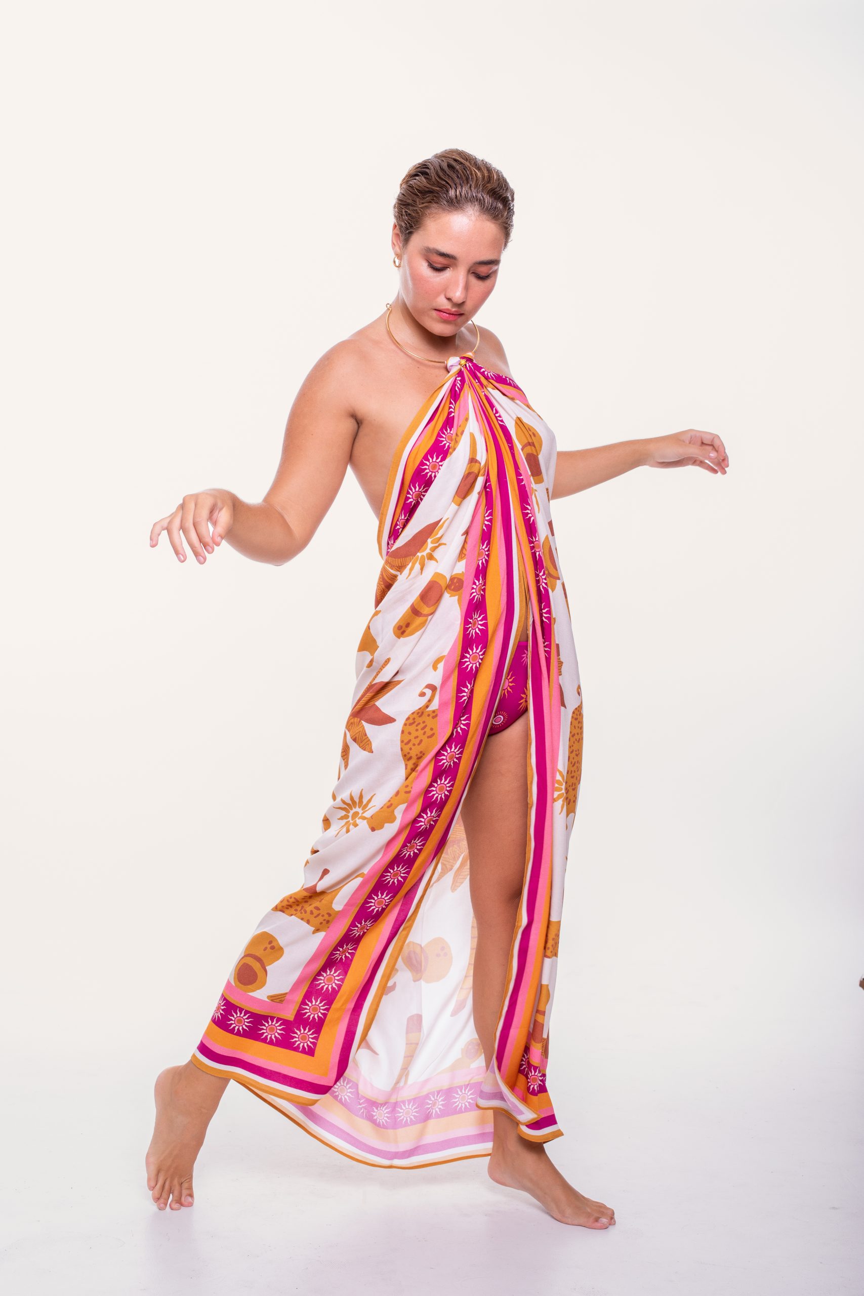 Barrado na estampa sol e interior na estampa floresta. Utilize essa peça junto do biquíni/maiô em uma das estampas para um visual completo e elegante durante seu momento de sol e lazer.