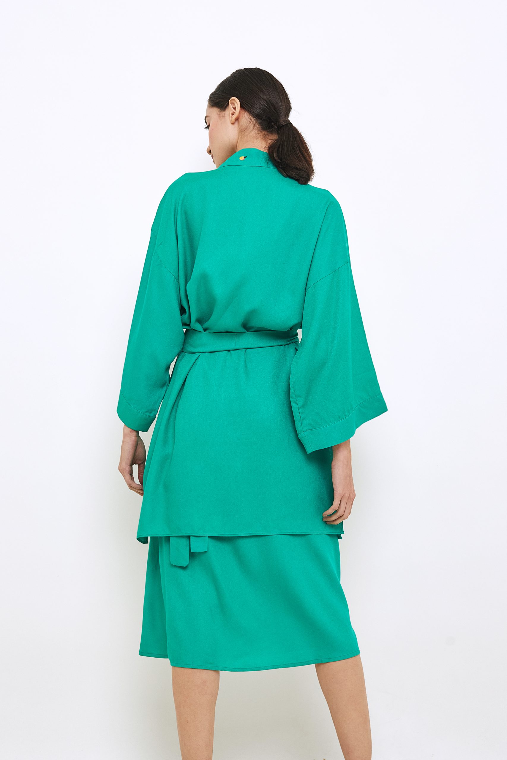 Esse Quimono foi idealizado para ser usado aberto com top de biquíni em um dia no beach club ou com a saia também bordada para uma saída casual em um dia ensolarado.